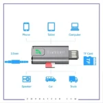 این دانگل بلوتوثی قادر است تا صدا را به صورت بیسیم از دستگاههای مختلفی مانند گوشیهای هوشمند، تبلتها و