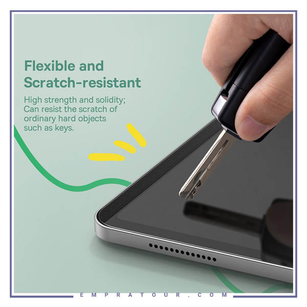 با استفاده از فیلم کاغذ PET با احساس نوشتن ،  محافظ صفحه این امکان را به شما می ‌دهد تا تجربه نویسش بیشتری داشته باشید .  این ویژگی بسیار مناسب برای کاربرانی است که به دنبال تجربه نویسش طبیعی ‌تر هستند .