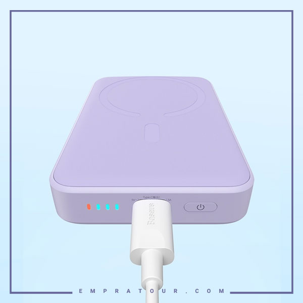 میزان جریان/ ولتاژ ورودی برای درگاه Type C برابر 5V/3A , 9V/2A است. این یعنی برای شارژ پاوربانک می توانید از آداپتور 18 واتی استفاده کنید و پاوربانک سریع تر شارژ خواهدشد. به غیر از پد شارژ وایرلس ، پاوربانک بیسیم بیسوس دارای خروجی Type C نیز می باشد . میزان جریان/ولتاژ خروجی آن با پشتیبانی از شارژ سریع PD برابر 5V/2.4A , 9V/2.22A , 12V/1.5A و حداکثر توان 20 وات است. حداکثر توان خروجی وایرلس برابربا 15 وات است. البته بسته به توان شارژ وایرلس گوشی شما می تواند بین 5W/7.5W/10W/15W متغیر باشد. حداکثر توان خروجی پاوربانک در مجموع 20 وات و در صورتی که به طور همزمان از وایرلس و Type C استفاده شود خروجی کل برابر 5V/2.4A خواهد بود . در ضمن این پاورباک یک صفحه نمایشگر دارد که میزان شارژ پاوربانک را به صورت درصد مینوسید . این پاوربانک فقط از طریق ورودی تایپ سی شارژ میشود .