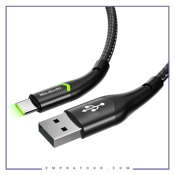 یک طرف کابل فست شارژ مک دودو را کانکتور Type-C و طرف دیگر آن USB می  باشد . بدنه این کابل تایپ سی را الیاف بافته شـده تشکیل دآده که در