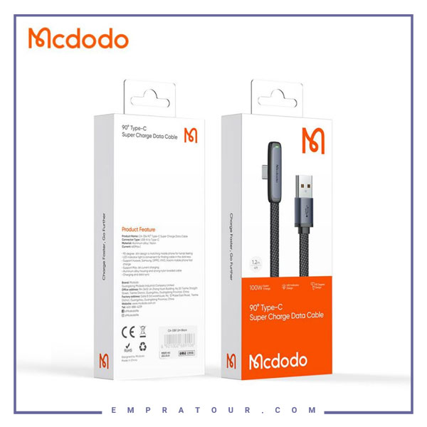 با استفاده از کابل Mcdodo Type C Super Charge Data Cable CA-3341 با کانکتور 90 درجه، میتوانید