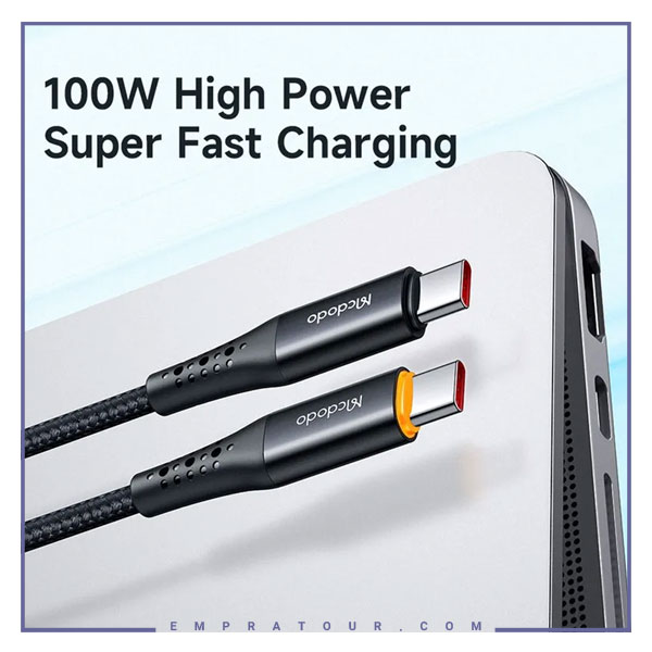 این کابل از جنس با کیفیتی ساخته شده است و دارای توان خروجی 100 وات می باشد ، به این معنی که قادر است برای شارژ سریع و قدرتمند دستگاه