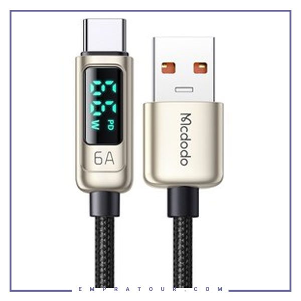 کابل Type C مک دودو مدل Mcdodo DIGITAL CABLE PRO SUPER CHARGE CA-8690 دارای قابلیت شارژ سریع با شدت جریان خروجی 6 آمپر است