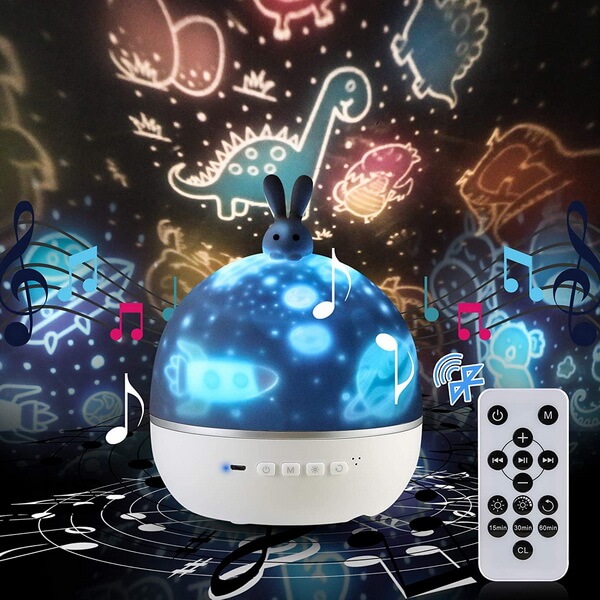 - همچنین از این چراغ خواب به واسطه بهرهمندی آن از انواع تمهای جذاب به عنوان یک پروژکتور رقص نور نیز استفاده میشود. بر اساس علاقه شما امکان تنظیم یکی از 6 تم نور قابل نمایش در چراغ خواب گردان مون لایت بانی میسر است. به دلیل قابلیت رقص نور و چرخش 360 درجه این چراغ خواب، از آن برای موارد دیگری مانند جشن تولد نیز استفاده میشود. بدین ترتیب ظاهری جذاب را به فضای مهمانی خود میبخشید. کهکشانها همیشه برای کودکان و حتی بزرگسالان سرگرمکننده است. تم آسمان فضای آرام را به شما هدیه میدهد. همچنین این تم باعث میشود که کودکان دنیای ستارهها و سیارهها را بهتر بشناسند.